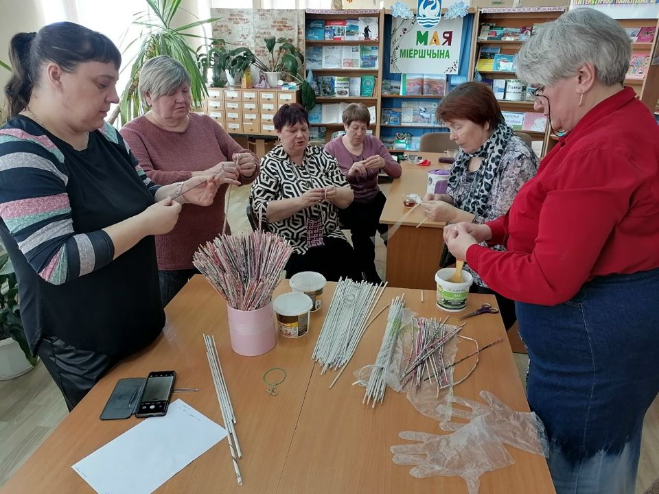 13 марта в детской библиотеке прошло творческое занятие для посетителей отделения дневного пребывания для граждан пожилого возраста Миорского ТЦСОН "Мастерская газетной трубочки".