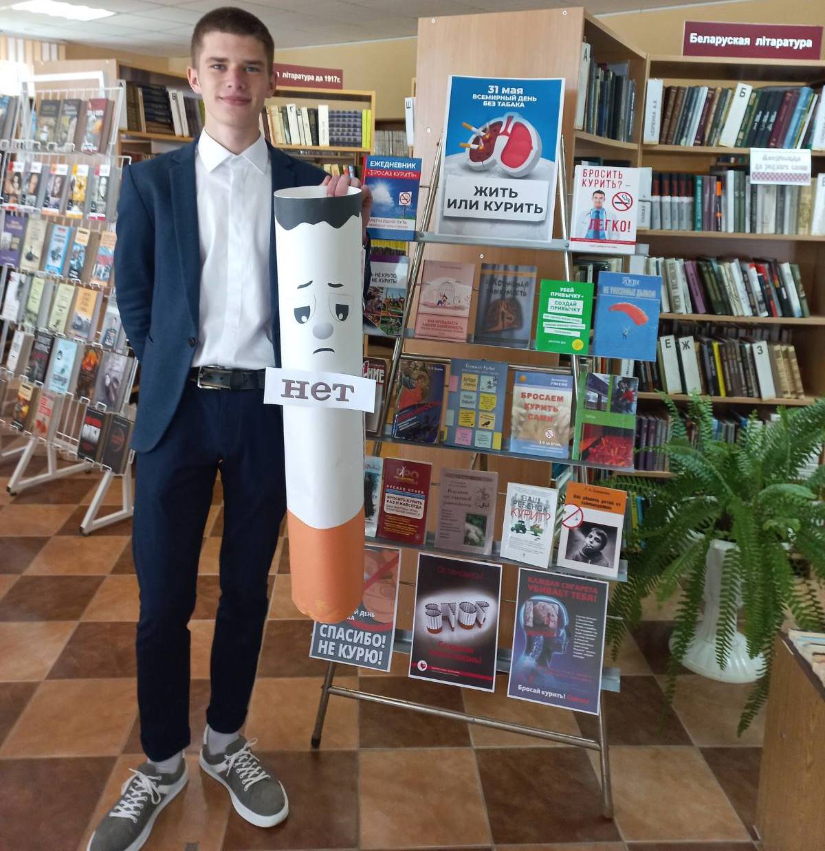 Курение является одной из самых частых причин смерти, которую человек в силах предотвратить. Всемирная организация здравоохранения (далее – ВОЗ) объявила о проведении глобальной кампании по случаю Всемирного дня без табака 2022 г. на тему «Табак – угроза нашей окружающей среде». Миорская центральная районная библиотека присоединилась к республиканской информационно – образовательной акции «Беларусь против табака» и организовала на абонементе профилактическую площадку «Книга и газета вместо сигареты». В период с 23 мая по 12 июня сотрудники отдела обслуживания и информации раздавали посетителям листовки о местах, где курение запрещено, транслировали видеоролики о вреде курения, проводили информобзоры у выставки – размышлении «Жить или курить?».