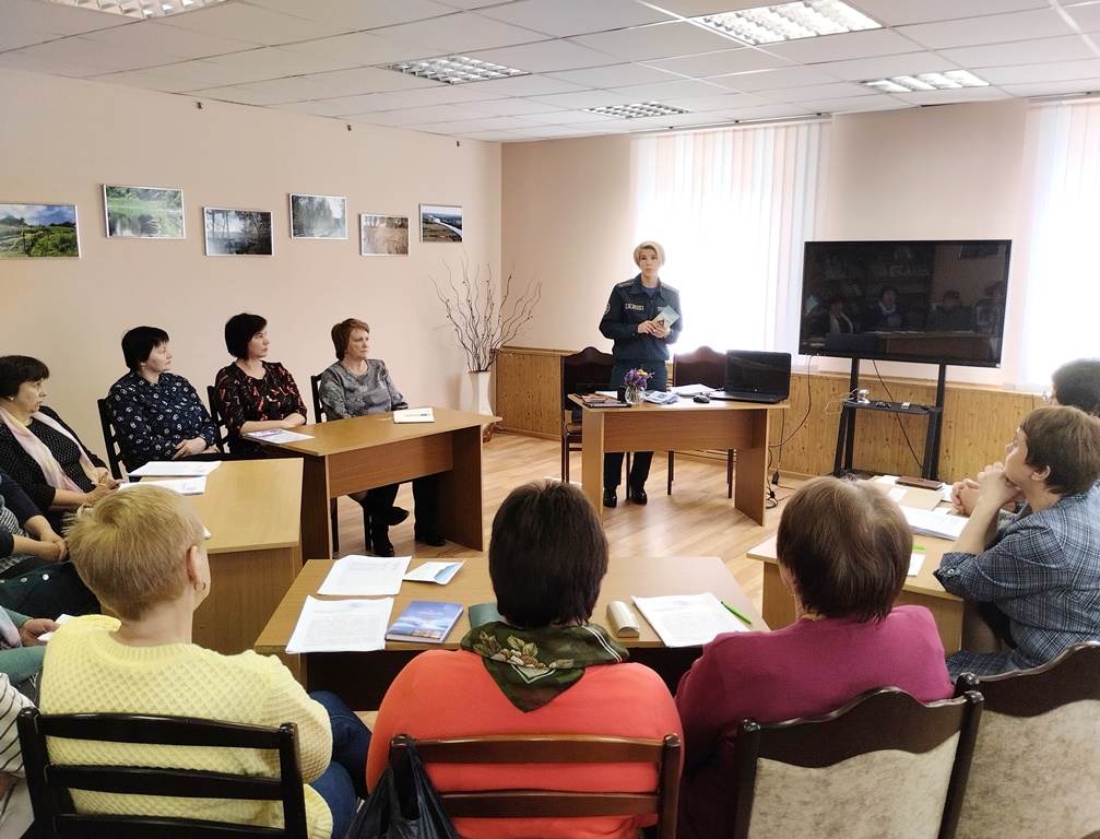 12 апреля перед рабочим коллективом ГУК «Миорская централизованная библиотечная система» в Миорской центральной районной библиотеке выступил инспектор сектора пропаганды и взаимодействия с общественностью Гиржда Ольга Михайловна. Ольга Михайловна рассказала о важности соблюдения правил пользования электронными приборами, об административных правонарушениях за разведение костров в запрещенных местах. Были розданы листовки.