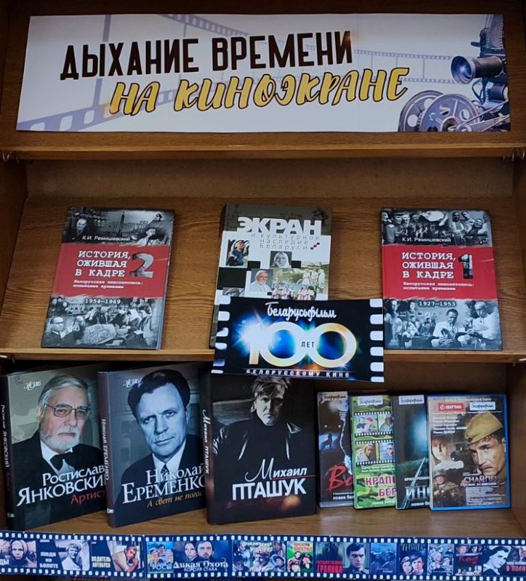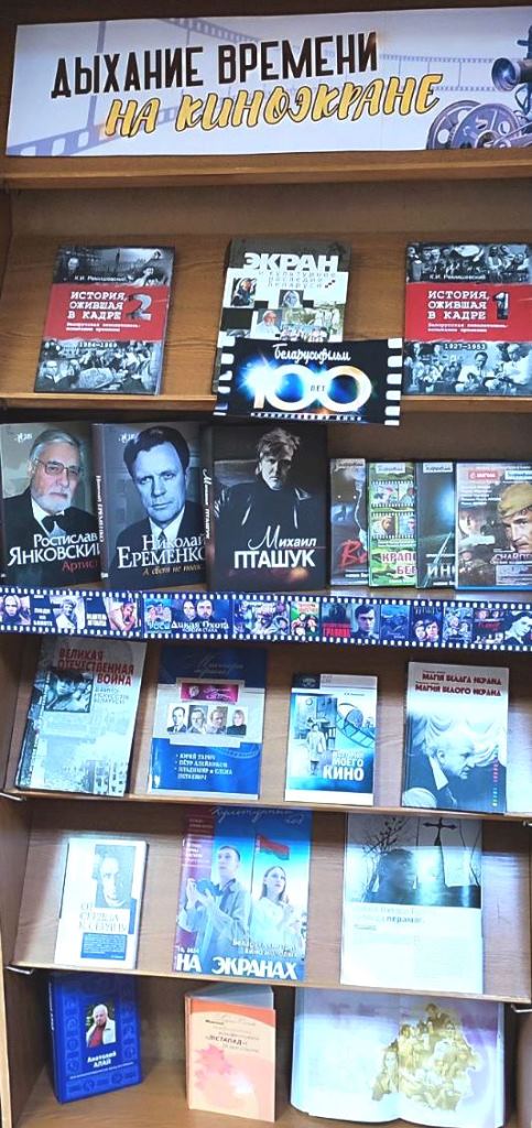 В центральной библиотеке действует тематическая выставка «ДЫХАНИЕ ВРЕМЕНИ НА КИНОЭКРАНЕ». На ней представлены книги о белорусском кино и белорусских авторов, по которым были сняты художественные фильмы. Читатели могут познакомиться с книгами об известных режиссёрах и актёрах, которые внесли свой огромный вклад в развитие белорусского кино.