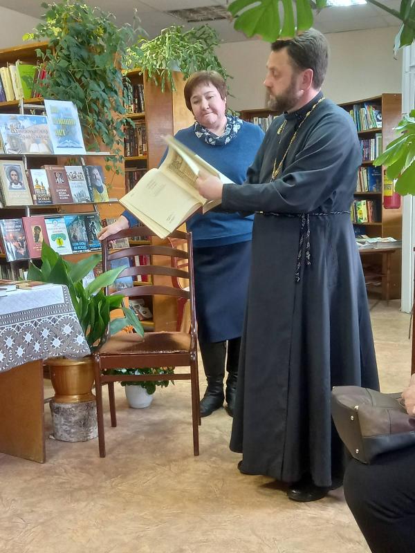 13 марта 2025 года в Узменскай библиотеке прошла встреча населения с благочинным Миорского церковного округа протоиереем Виктором Вабищевичем. Она была приурочена Дню проваславной книги. В библиотеке была подготовлена выставка провославной литературы "Книжный мир провославия". Библиотекарь вкратце упомянула об истории праздника. Отец Виктор рассказал о первопечатниках книг "Апостол" и "Библия ". Познакомил присутствующих с церковными книгами, их значении в церковной службе. Ответил на множественные вопросы верующих. Напомнил прихожанам о великом посте, правилах посещения церковных богослужений.
