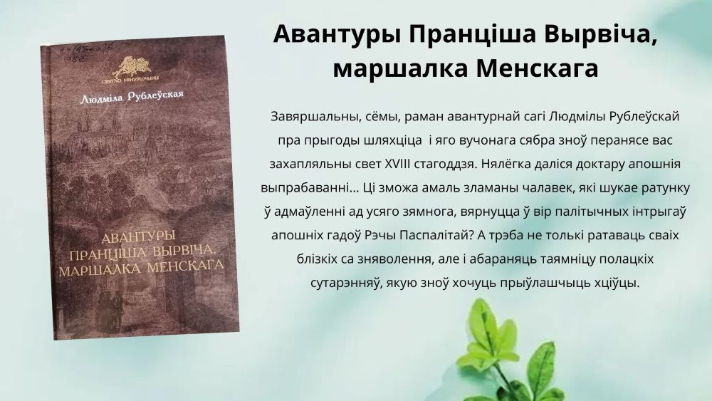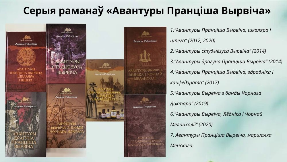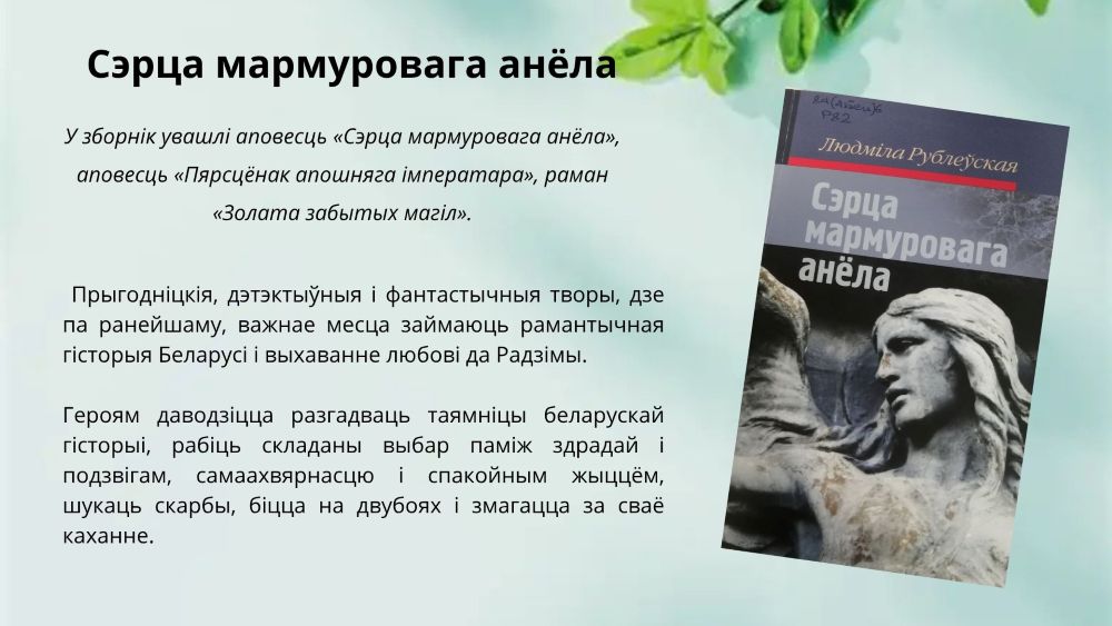 Людміла Рублеўская – вельмі разнапланавасць аўтар, яна піша як вершы, так і прозу, асноўная частка якой складаецца з гістарычных раманаў. Зараз мы прапануем вашай увазе мультымедыйны агляд яе творчасці.