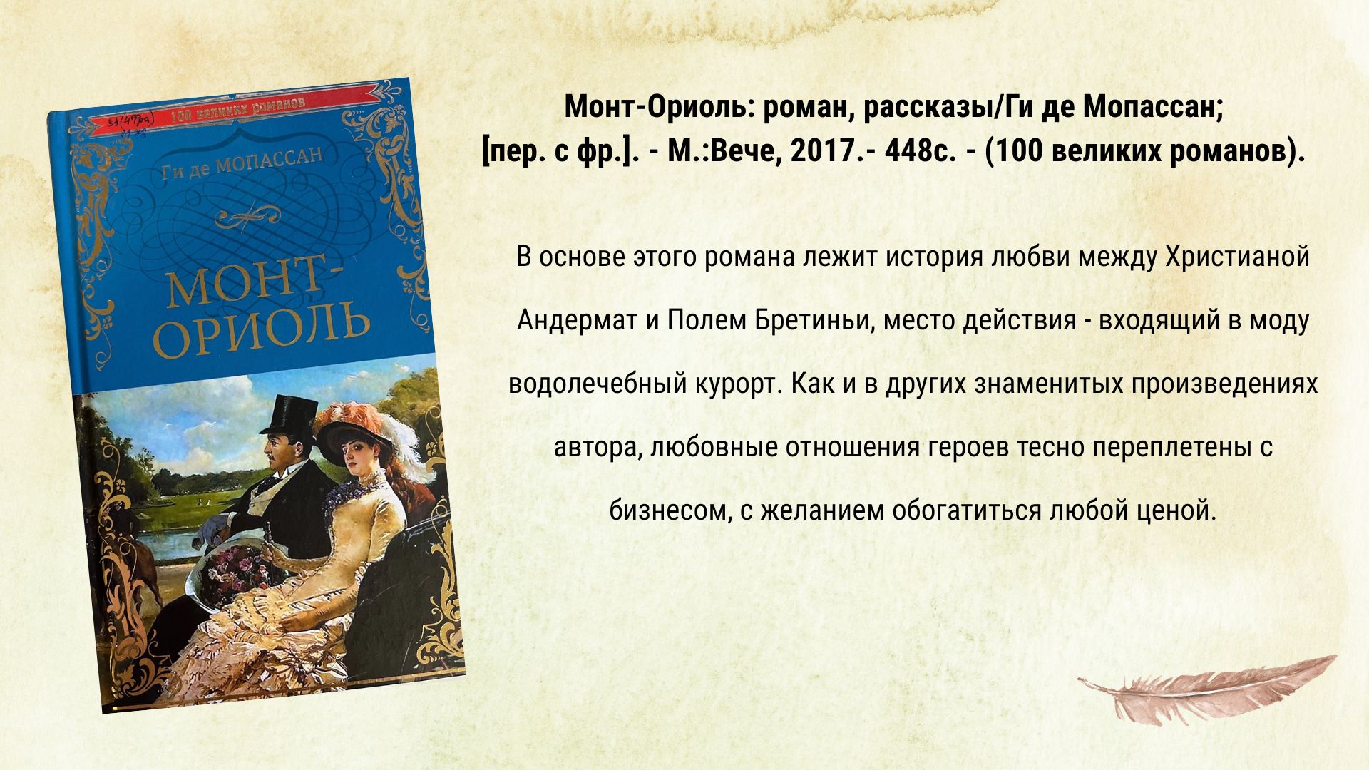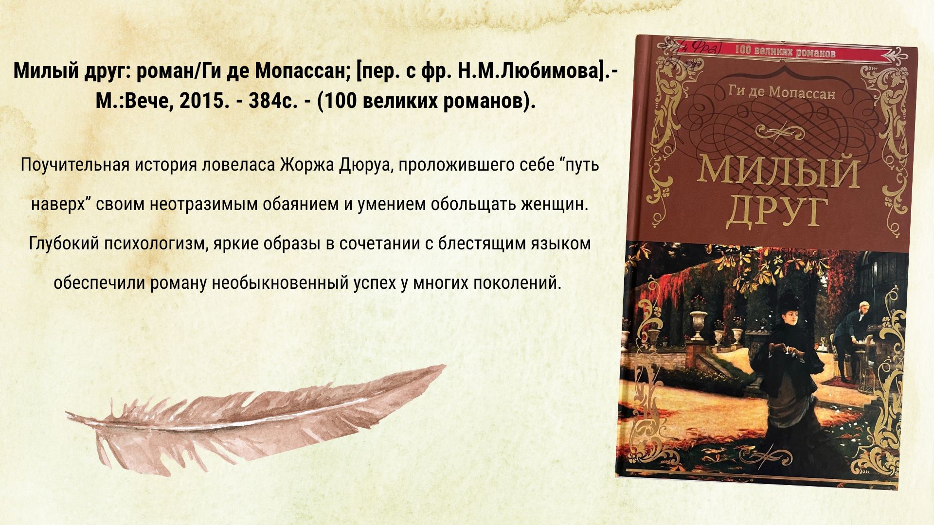 К этой дате в центральной библиотеке проходит литературный портрет «Ги де Мопассан мастер новеллы».