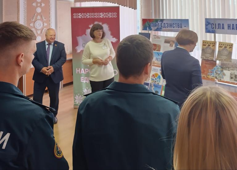 В Миорском районном исполнительном комитете сотрудниками центральной библиотеки для молодых специалистов была подготовлена тематическая выставка «Мір і адзінства – сіла народа”. Книги, которые представлены на выставке, знакомят с историей Беларуси, ее основными символами,а также раскрывают смысл и значение праздника,символизирующего единство народа Беларуси, стремление к миру и независимости.