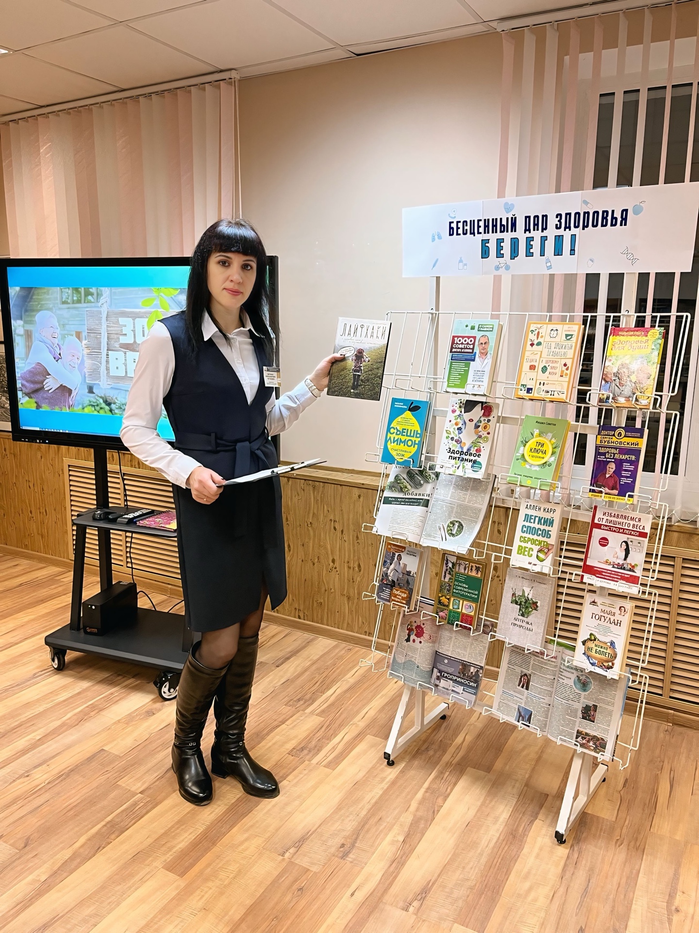 В библиотеке ветераны познакомились с выставкой работ Галины Загурской - нашей землячки, поэтессы, художницы. Для присутствующих была представлена книжная выставка «Бесценный дар здоровья береги». Здесь каждый мог найти множество народных рецептов для профилактики и лечения заболеваний, а также рецепты народной медицины.