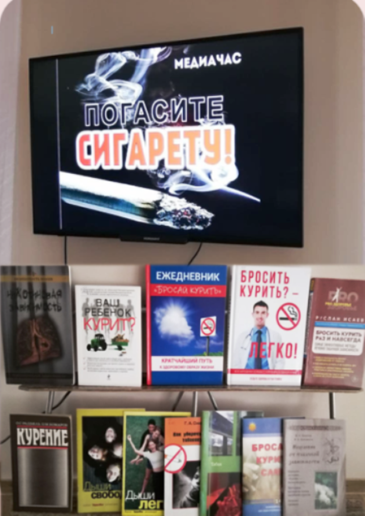 19 ноября Миорская центральная районная библиотека присоединилась к республиканской антитабачной информационно-образовательной акции и организовала медиачас "Погасите сигарету" с просмотром видеоролика "Профилактика курения" и книжной выставкой антитабачной направленности.