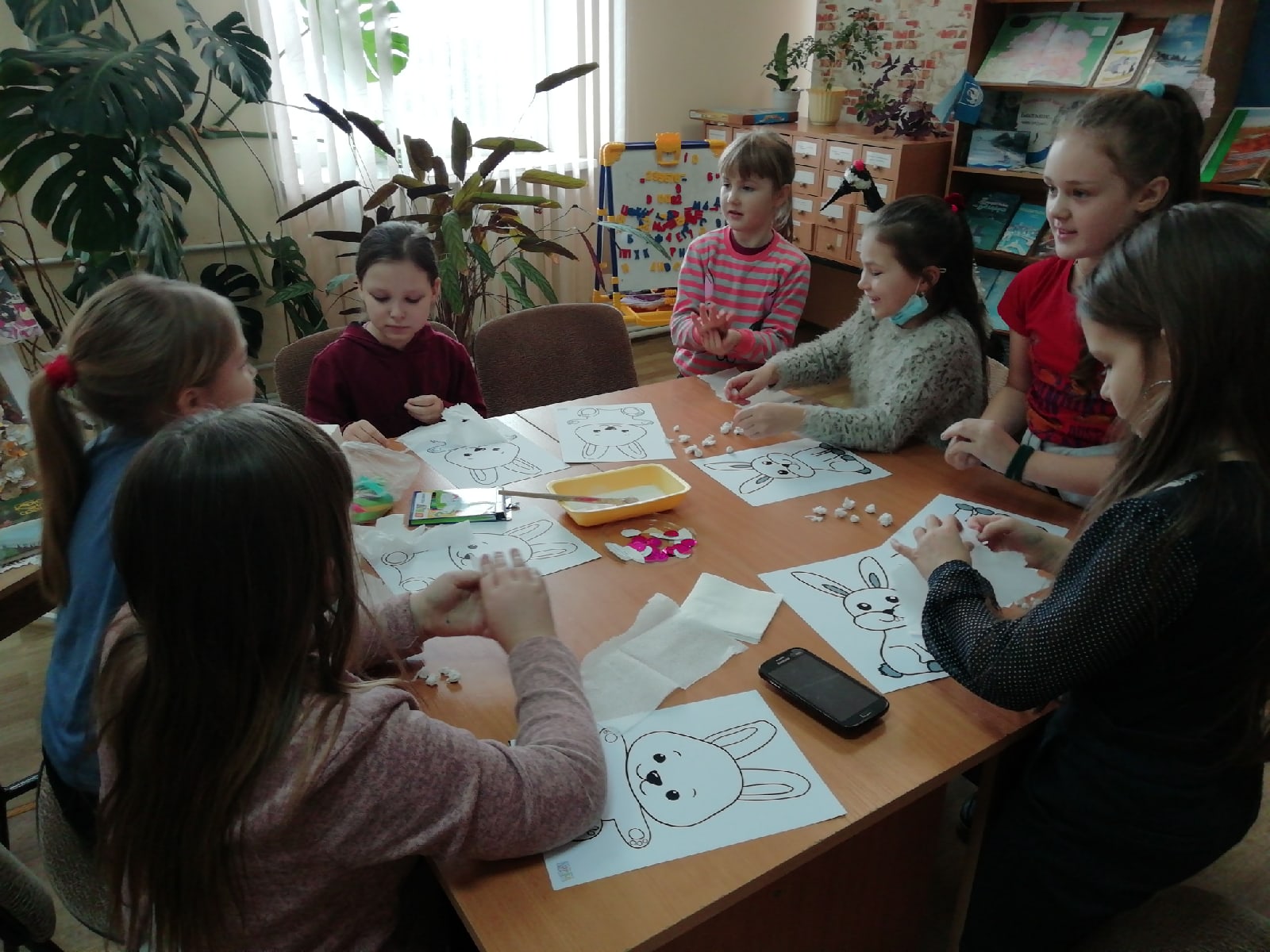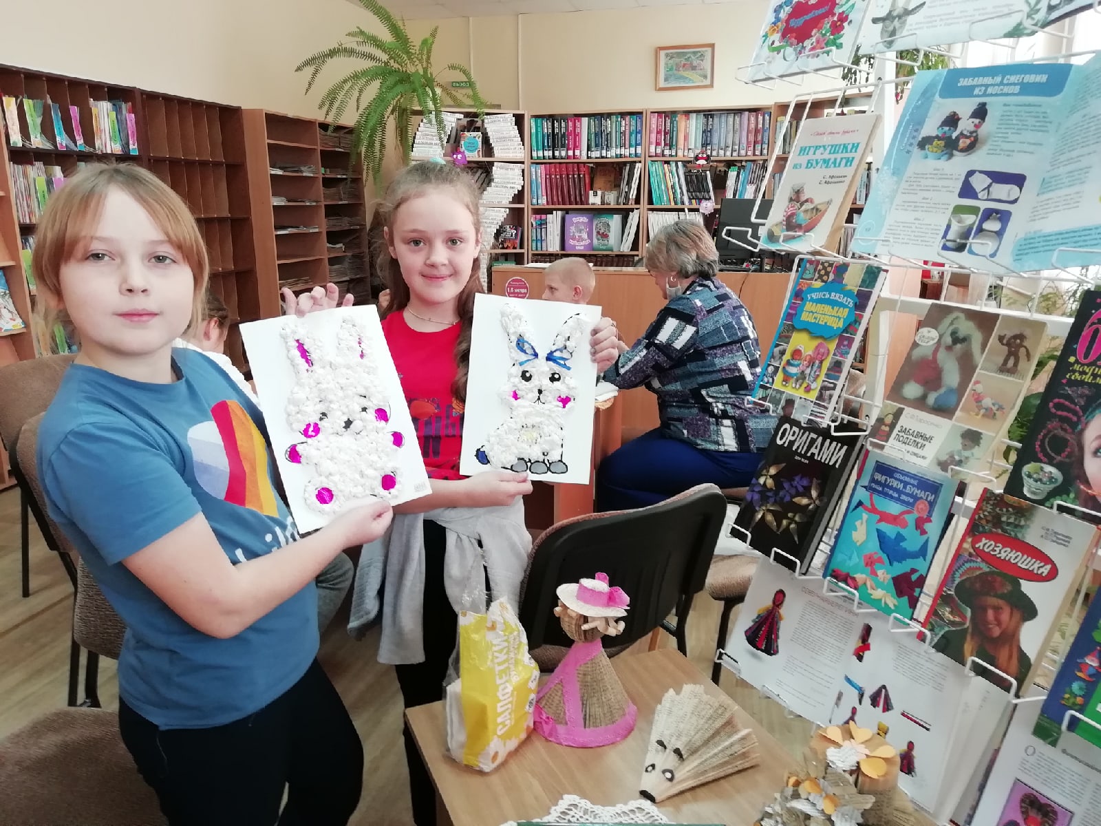В этот раз дети участвовали в двух мастер -классах "Заяц своими руками". Ребята разделились на две группы. Девочки делали зайцев из салфеток, а мальчики шили театральных зайцев надеваемых на руку. Дети весело общались друг с другом и продолжили общение за чаепитием. Также была оформлена выставка "Решето идей".