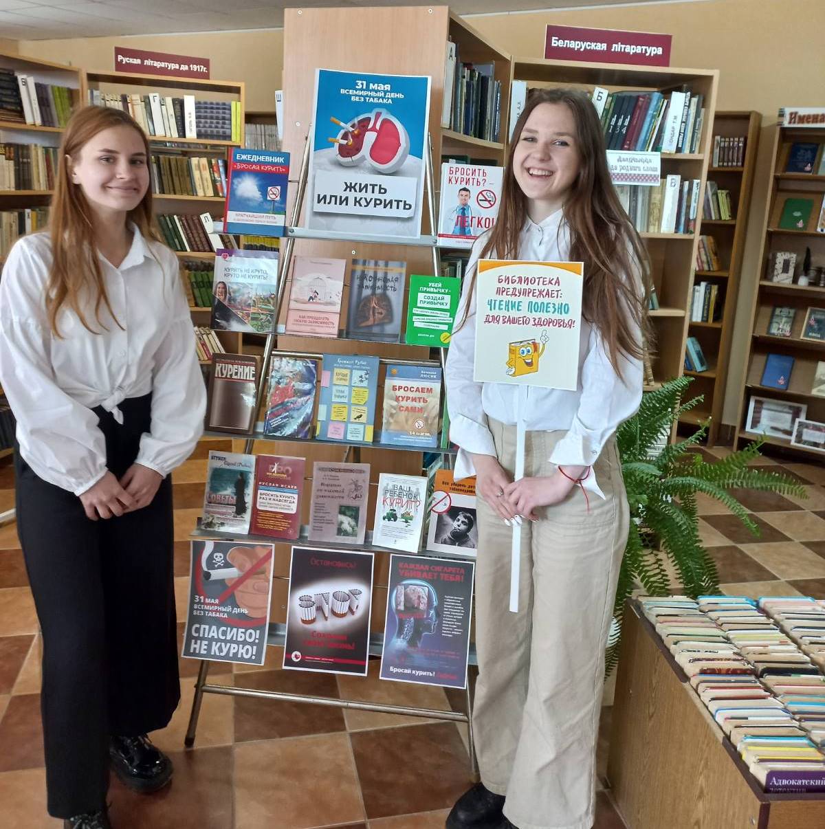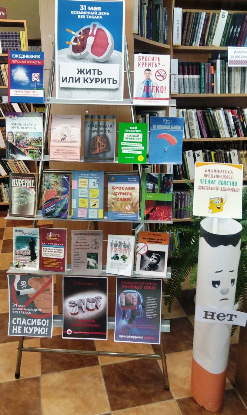 Курение является одной из самых частых причин смерти, которую человек в силах предотвратить. Всемирная организация здравоохранения (далее – ВОЗ) объявила о проведении глобальной кампании по случаю Всемирного дня без табака 2022 г. на тему «Табак – угроза нашей окружающей среде». Миорская центральная районная библиотека присоединилась к республиканской информационно – образовательной акции «Беларусь против табака» и организовала на абонементе профилактическую площадку «Книга и газета вместо сигареты». В период с 23 мая по 12 июня сотрудники отдела обслуживания и информации раздавали посетителям листовки о местах, где курение запрещено, транслировали видеоролики о вреде курения, проводили информобзоры у выставки – размышлении «Жить или курить?».