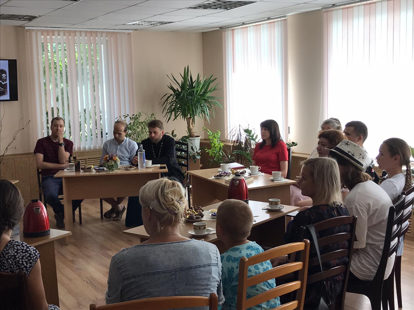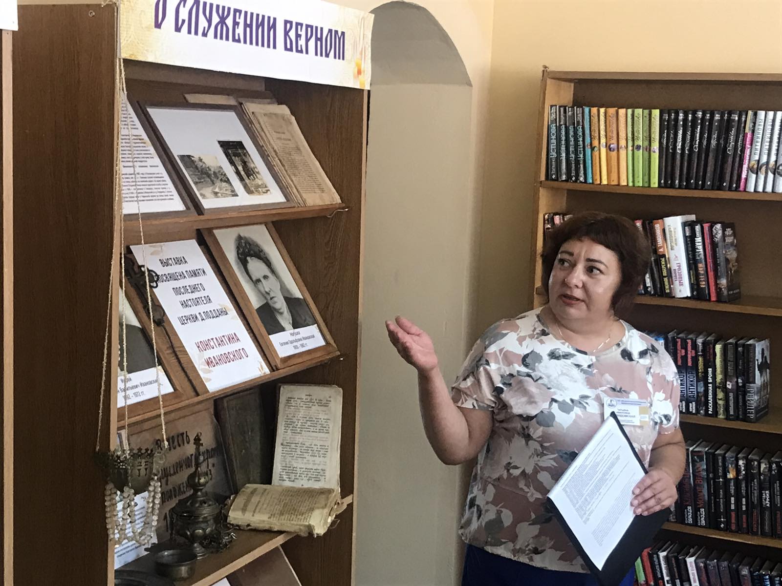 Заведующий отделом обслуживания и информации Татьяна Ивановна Невядомская в начале мероприятия рассказала историю Подданской церкви, о предметах и фотографиях, размещенных на выставке "О служении верном". Далее гости разместились в читальном зале, где прихожане и потомки Константина Ивановского делились своими воспоминаниями. Во время беседы протоирей Виктор Вабищевич подчеркнул, как нелегко было быть священником в военное и послевоенное время, как нелегко было провести работу по увековечиванию памяти о разрушенном храме в д. Подданы.